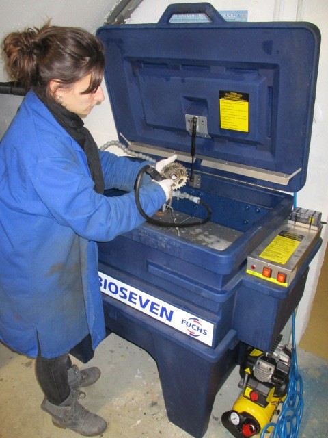 La fontaine de dégraissage biologique du CC37 permet de venir à bout des pièces les plus encrassées sans utilisation d’hydrocarbures nocifs (acétone, essence, etc.)