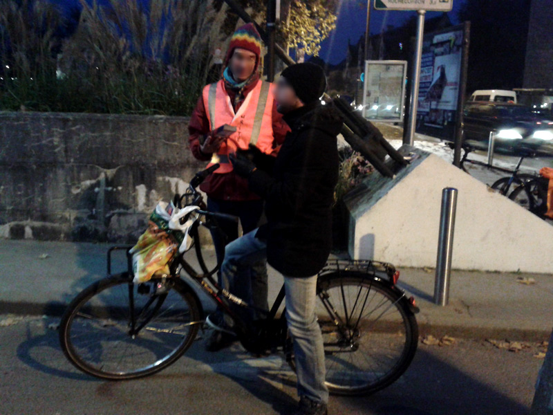 Il s’agissait de sensibiliser les cyclistes dont les vélos étaient mal voire pas du tout éclairés sur les obligations légales en la matière ainsi que sur les dangers qu’ils courent à ne pas être correctement visibles par les autres usagers de la route.
