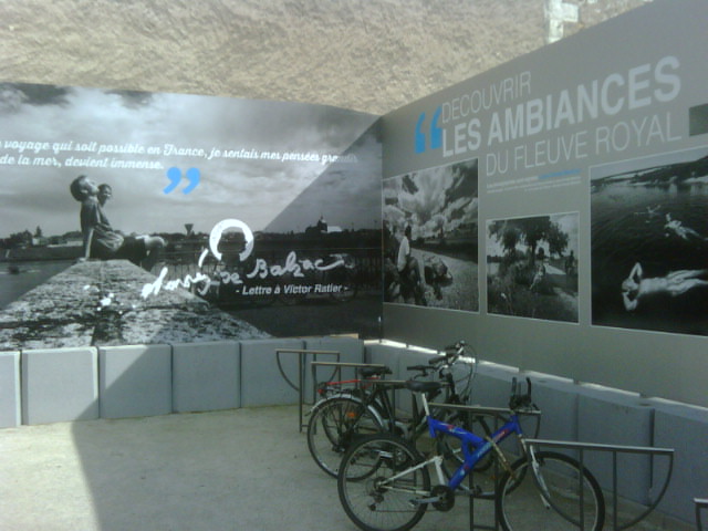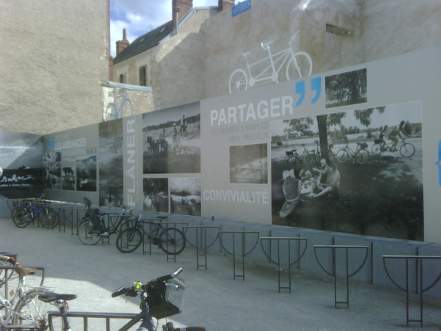 Devant l’arrêt de tramway de la gare de Tours, vous pourrez voir, en grand format et à ciel ouvert, des clichés de grande qualité et lire des textes extraits du livre La Loire à vélo*, le tout accompagné d’informations relatives à la promotion de l’usage du vélo.