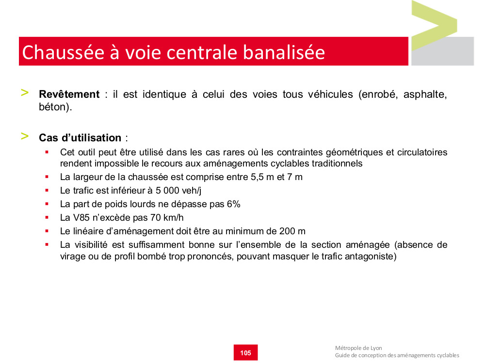 - Guide pour la conception des aménagements cyclables. Métropole de Lyon, juin 2019, 192 p.