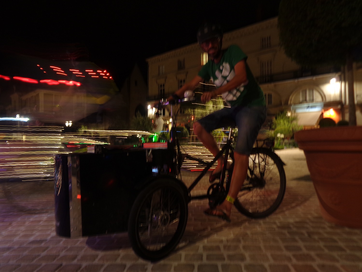 Benjamin Dubuis, photographe avec un triporteur qu’il utilise régulièrement pour transporter son matériel