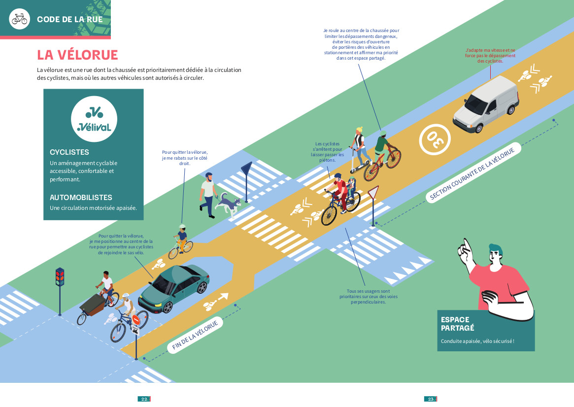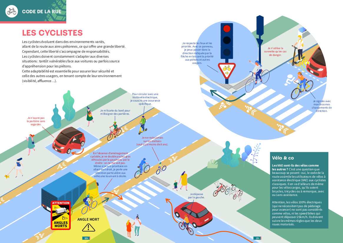 La nouveauté cette année : le guide intègre des éléments du Code de la rue qui présente les règles de circulation en ville, les bons gestes à adopter ainsi que les évolutions récentes de l’espace public.