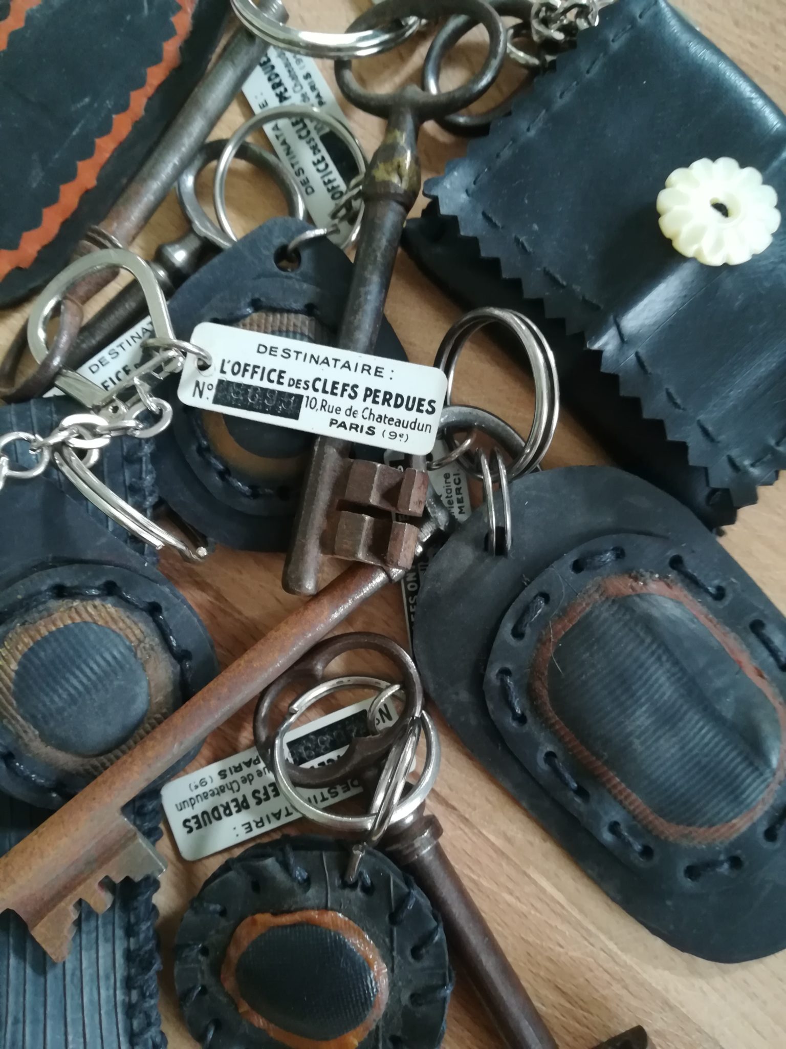 Porte-monnaie, porte-clés, porte-carte bancaire, pochette pour papiers d’identité-cartes grise…, trousses, poche à téléphone portable, petits sacs. Tout est fait main et qu’avec de la récup. @L’Increvable