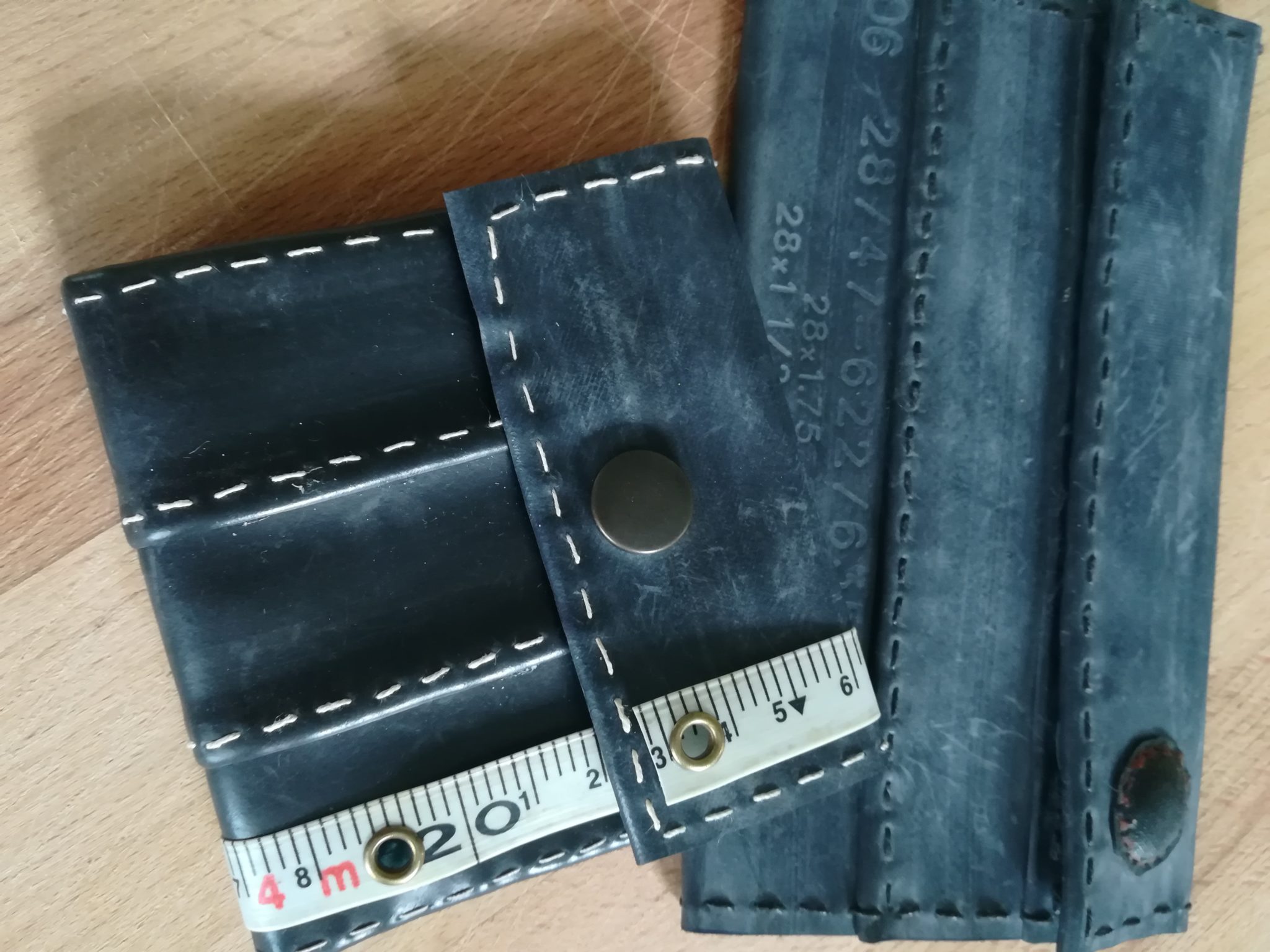 Ayant sous la main des matières premières (chambres à air crevées des VTT de mon établissement), j’ai essayé de fabriquer des portes monnaie et, plutôt contente du résultat, j’ai au gré du temps et des matériaux glanés à droite à gauche développé et diversifié mes productions.