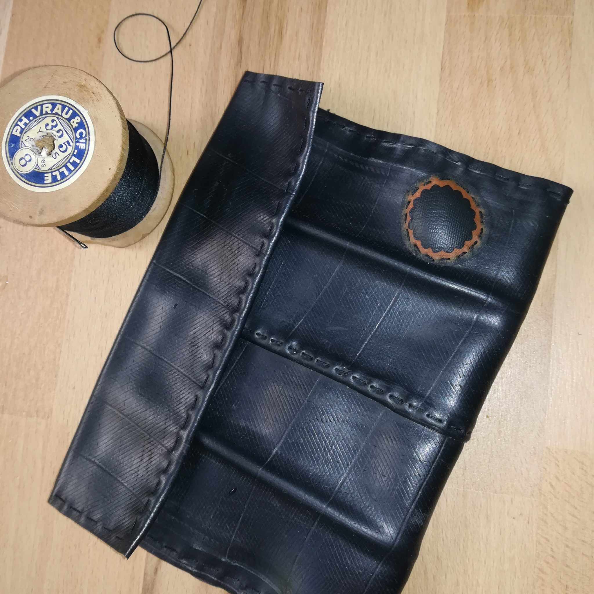 Il y a environ dix ans, j’ai découvert une créatrice qui fabriquait des sacs en chambre à air de tracteur et voiture. J’ai été enthousiasmée par le rendu de ses productions, leur originalité mais aussi par l’idée du recyclage.