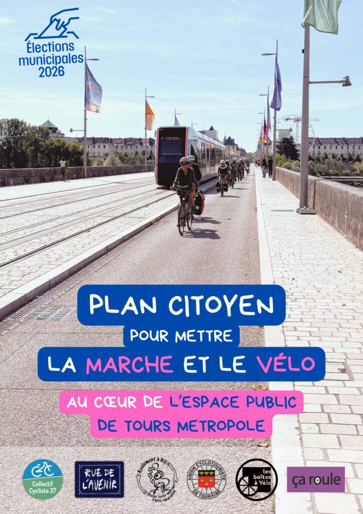 Le Collectif Cycliste 37, Rue de l’Avenir, Roulement à Bill, Les boîtes à vélo, l’Union Cyclotouriste de Touraine (UCT37) et Ça roule, appellent donc, à travers un plan citoyen, à un investissement massif de Tours métropole dans des aménagements piétons et cyclables sécurisés, à la mise en œuvre ambitieuse du Vélival, ainsi qu’une politique volontariste de sécurité routière pour protéger les usagers les plus vulnérables.